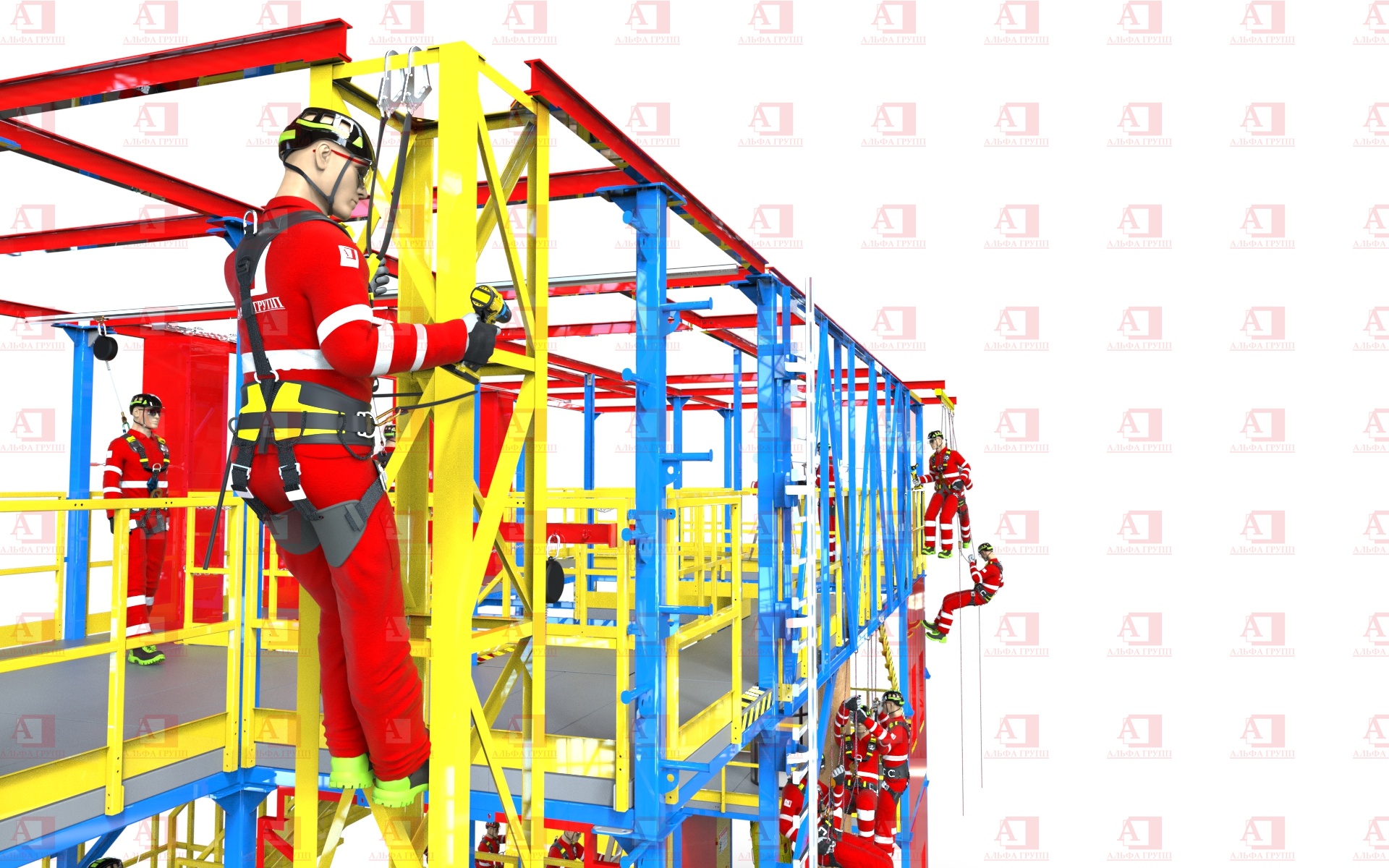 •  Подъём по металлоконструкции с применением вертикальной гибкой анкерной линии;