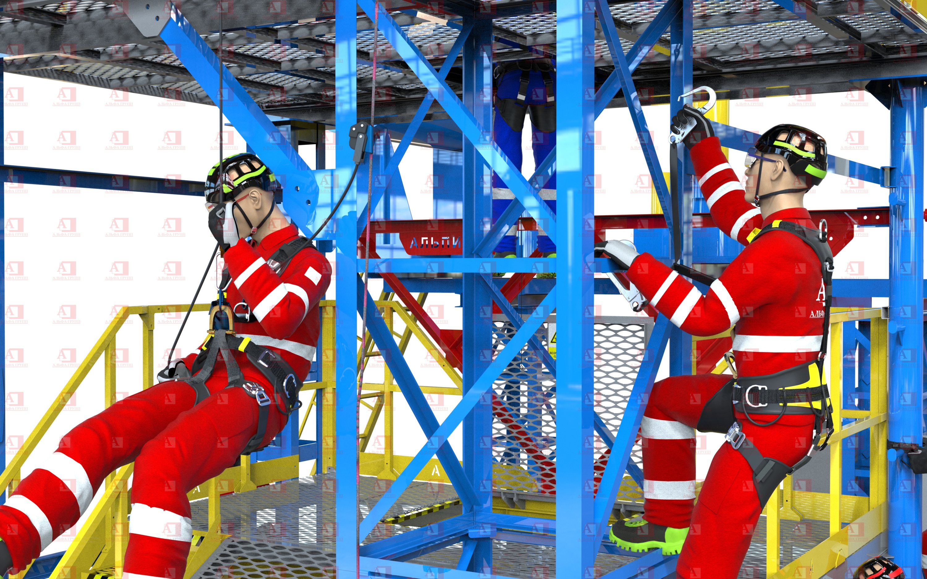 • Подъём по металлоконструкции с применением вертикальной гибкой анкерной линии;
