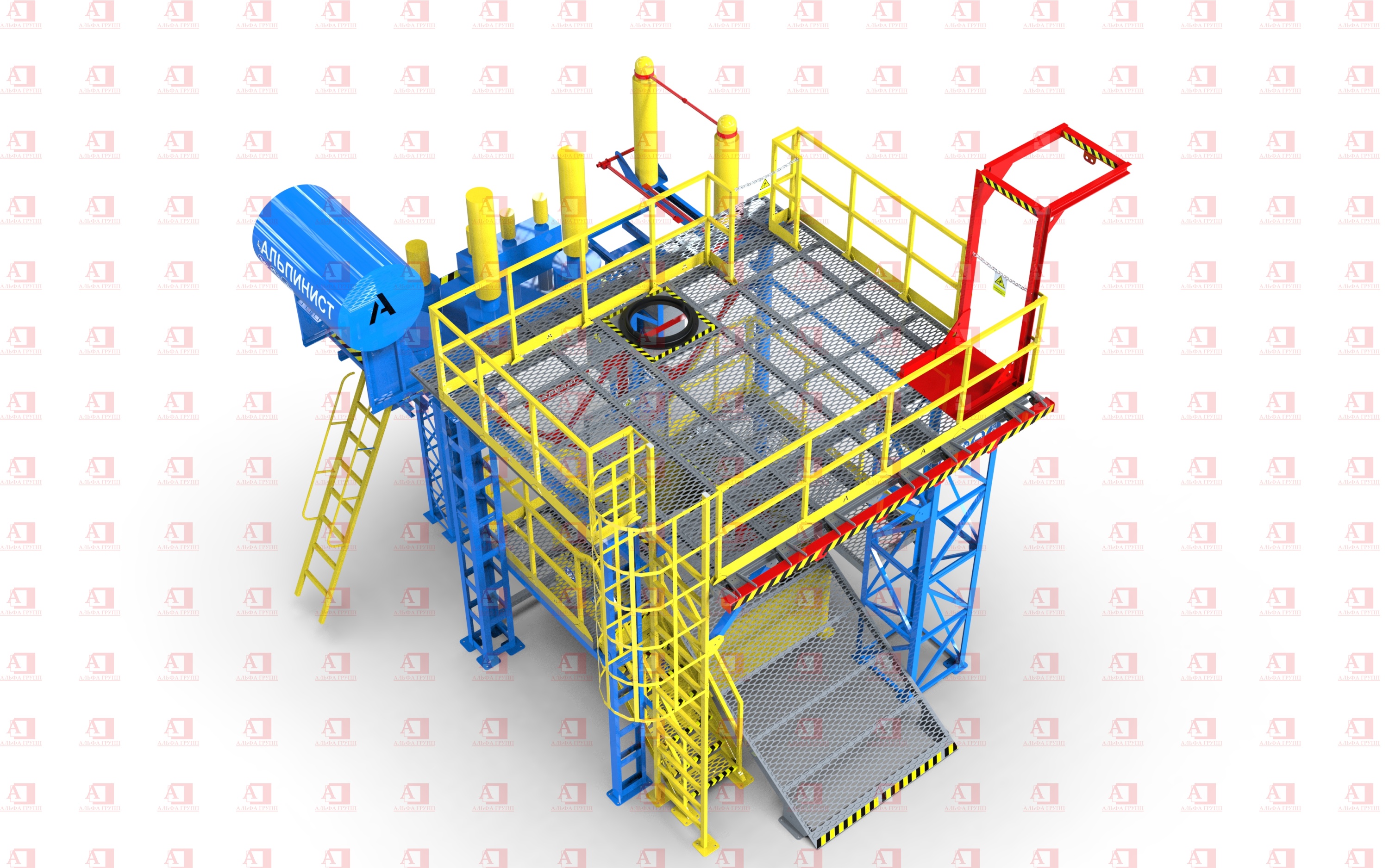 Доступ на рабочую площадку второго уровня осуществляется по стальной маршевой лестнице.